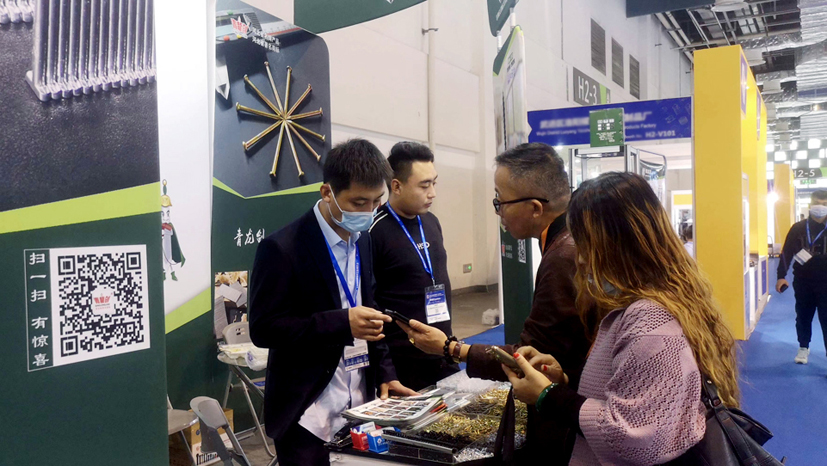 青龍劍公司此次的展品有:建筑用釘、裝修用釘、木工用釘、螺絲釘、門窗緊固、家具用釘以及膠類、五金類等新產品,展臺吸引了不少觀展商的目光。觀展商紛紛到公司展位前駐足咨詢,公司人員耐心為客戶詳細講解產品。