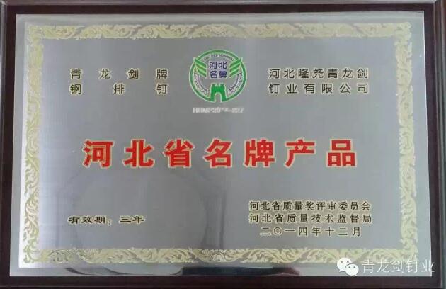 青龍劍釘業作為業內知名的釘類產品供應商,致力于生產優質高效的釘類產品。此次“河北省名牌產品”榮譽的獲得,表明青龍劍產品質量獲得了充分的認可,公司行業知名度和品牌影響力將得到進一步的提升。