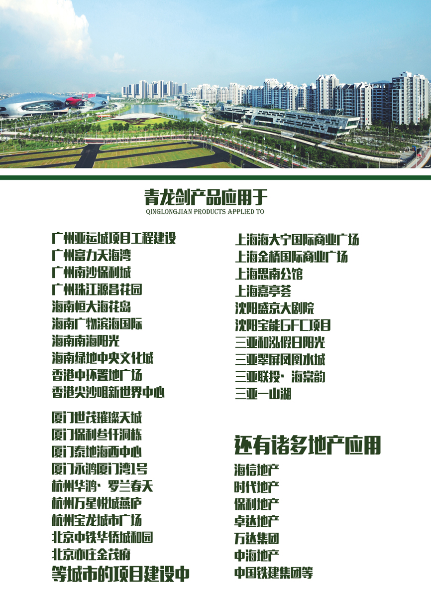 近日,收到廣州利合房地產(chǎn)發(fā)來的“青龍劍”品牌釘類產(chǎn)品在廣州亞運(yùn)城項(xiàng)目成功入選的相關(guān)材料,青龍劍被列入工程項(xiàng)目中指定品牌釘類產(chǎn)品。