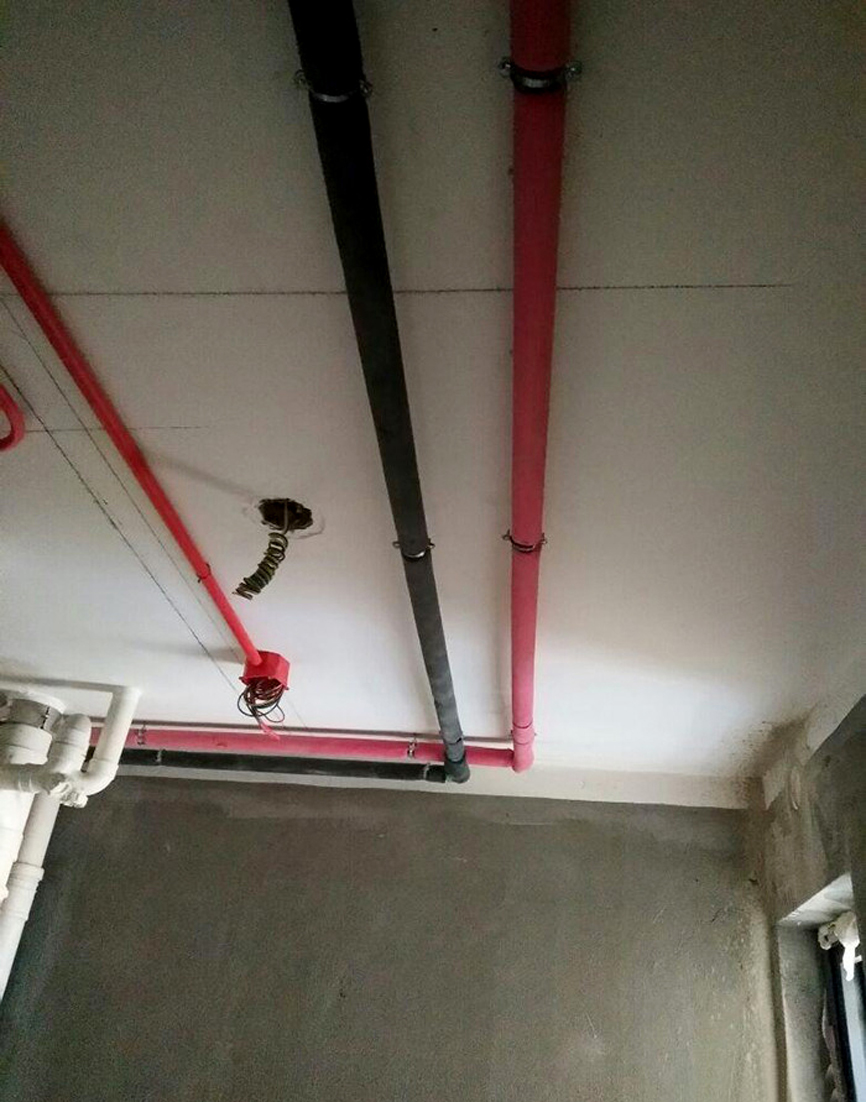 在標準裝修施工時,強弱線路必須采用PVC管進行套管保護,并通過不同顏色的PVC管進行區(qū)分,通常紅色PVC管為強電,藍色PVC管為弱電。